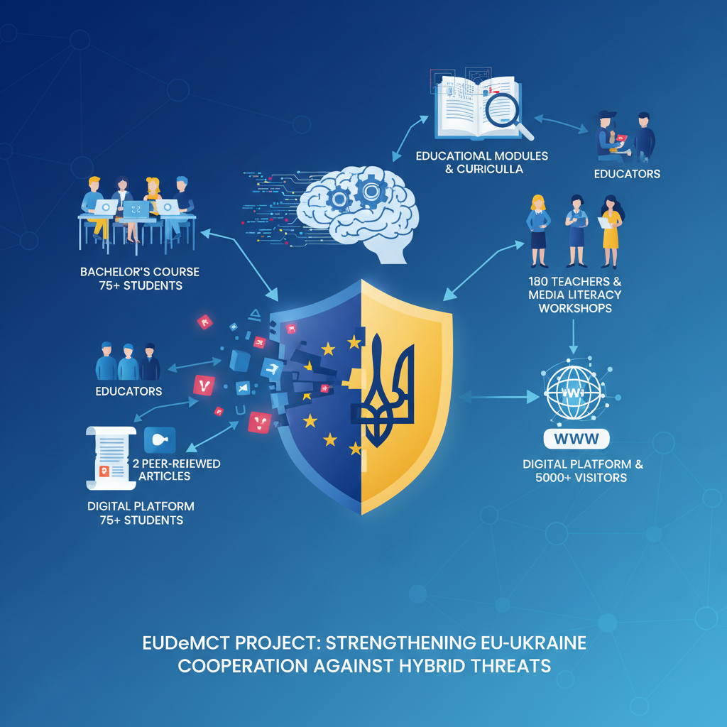 By integrating cybersecurity, political science, and strategic analysis, the EUDemCT project strengthens EU-Ukraine cooperation, promotes democratic resilience, and enhances institutional capacity to counter hybrid threats.